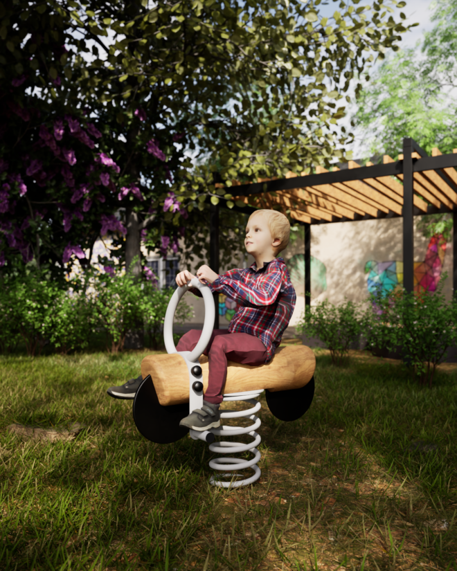 Bike Spring Rider nabízí dětem jedinečný zážitek z jízdy na pružinovém houpadle, který podporuje rozvoj rovnováhy a koordinace. Tento design v přírodním stylu přináší hravý prvek do každého dětského hřiště nebo rekreačního prostoru.