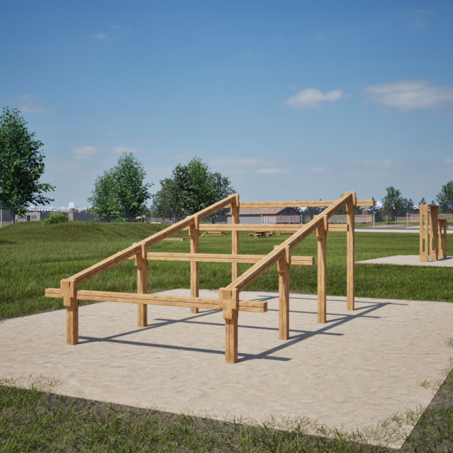 Tento prvek je perfektní volbou pro veřejné parky, sportovní areály či školní hřiště, kde podporuje aktivní trávení volného času a motivuje k pohybu. Svým designem vhodně doplňuje moderní venkovní fitness vybavení a přispívá k celkové atraktivitě prostoru.