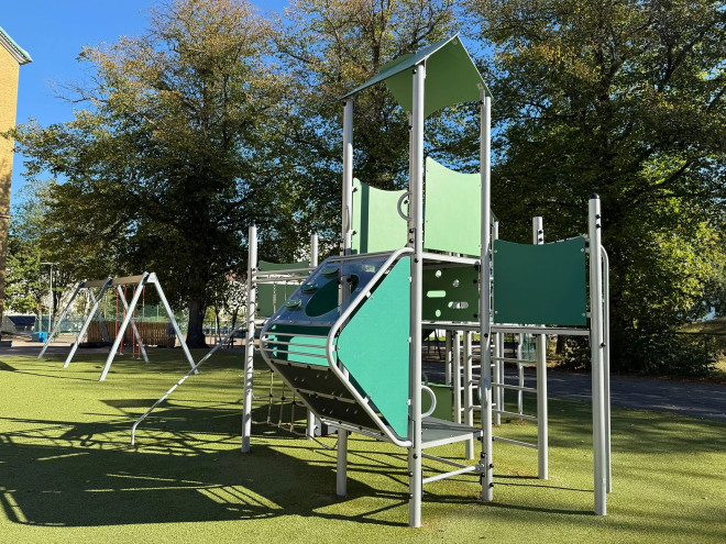 Fort with two towers and a slide
