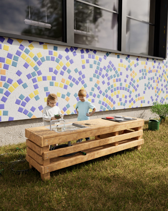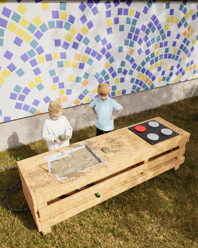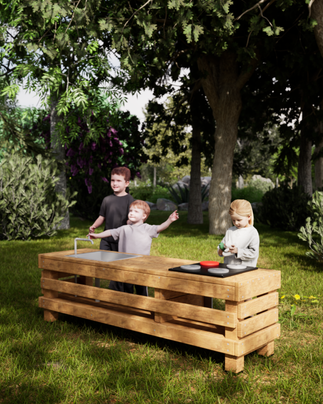 Kitchen Table je ideální prvek pro dětská hřiště, školky či rodinné zahrady, kde podporuje rozvoj motoriky a fantazie dětí. Jeho realistické prvky jako dřez a varná deska umožňují dětem hrát si na vaření a objevovat nové dovednosti v bezpečném a podnětném prostředí.