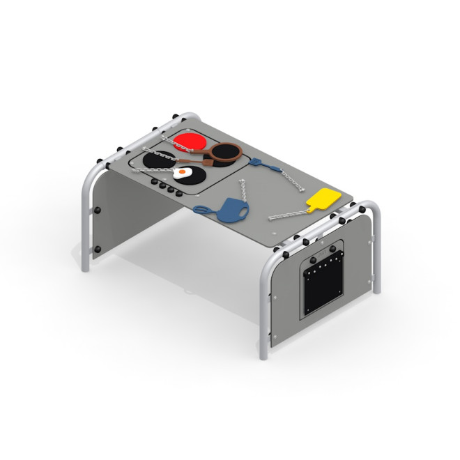 Herní stůl je navržen pro děti od jednoho roku věku, s důrazem na bezpečnost bez požadavku na speciální povrch podlahy. Konstrukce je stabilní a splňuje přísné normy pro dětská hřiště, což zajišťuje bezpečné a bezstarostné hraní.