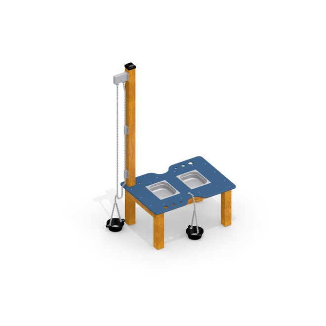 Hlavní konstrukce je vyrobena z masivního modřínového dřeva, které vyniká pevností a odolností vůči povětrnostním vlivům. Dále jsou použity prvky z nerezové oceli a recyklovaného HDPE, což zajišťuje dlouhou životnost a snadnou údržbu. Robustní řetězy z nerezové oceli a prvky z PE a gumy doplňují konstrukci o bezpečné a odolné detaily.