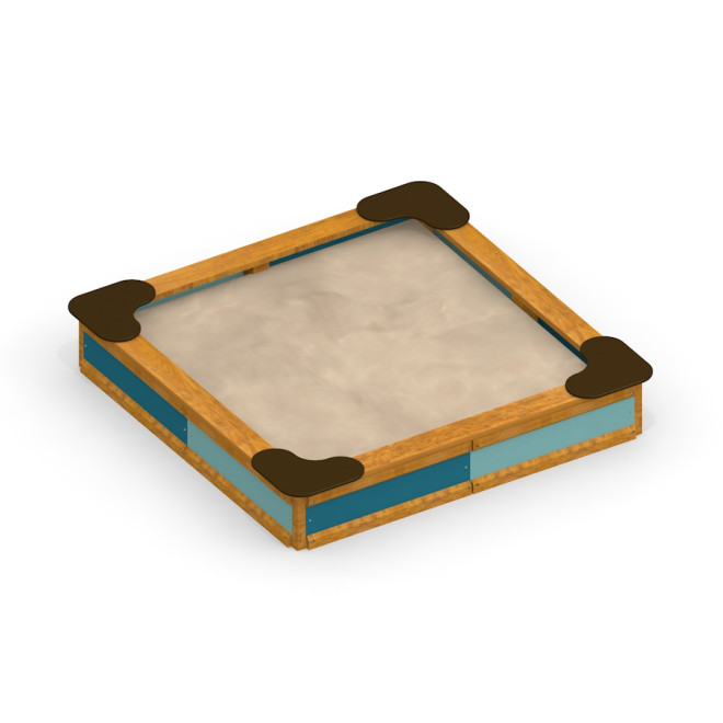 Sandpit (black) je vyroben z odolného modřínového dřeva a recyklovaného HDPE, což zajišťuje dlouhou životnost a odolnost vůči povětrnostním vlivům. Tyto materiály jsou šetrné k životnímu prostředí a bezpečné pro děti.