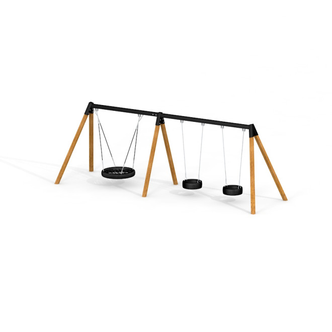 Double Bay Wooden Swing se skvěle hodí do veřejných i soukromých hřišť a rekreačních areálů. Kombinace různých typů sedadel zaručuje zábavu pro více dětí najednou a podporuje rozvoj motoriky, rovnováhy i sociálních dovedností při společné hře.
